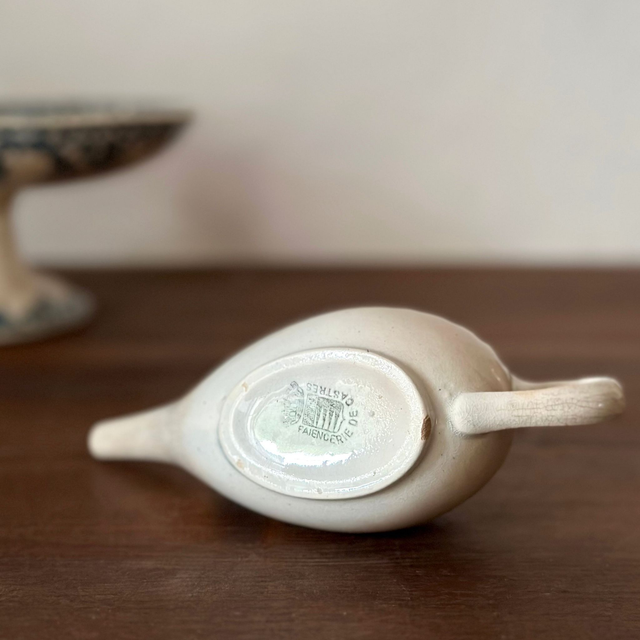 Jolie patine et jolis détails sur ce petit biberon à potion de la faïencerie de Castres.