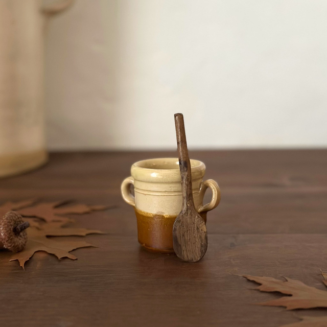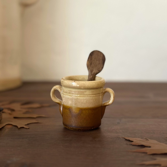Adorable pot à confit miniature avec sa petite cuillère en bois.