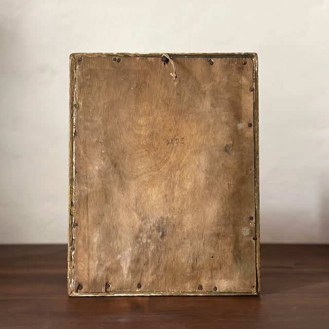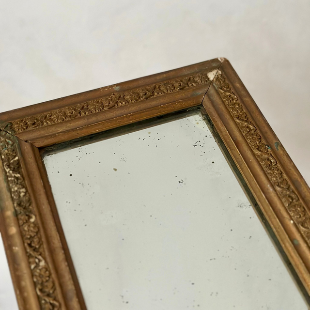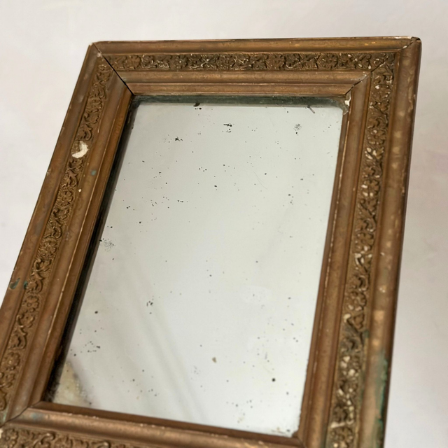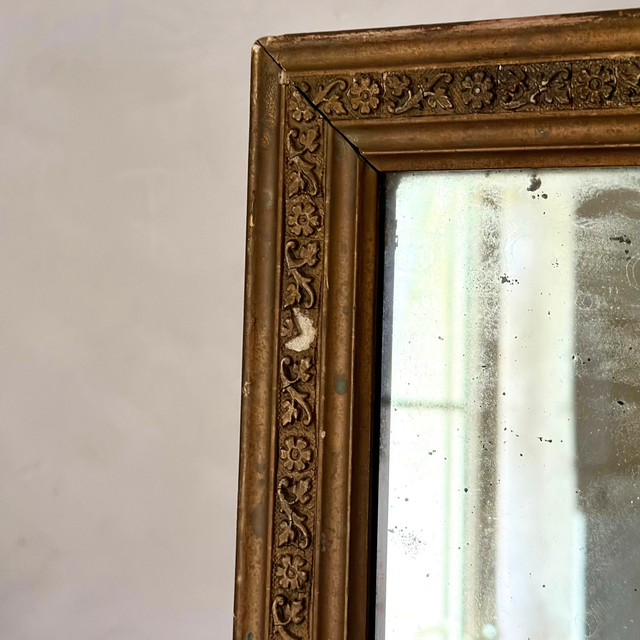 Ancien miroir au mercure avec son cadre en bois et stuc doré. Le dos est en bois également.