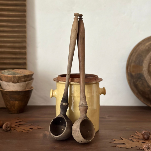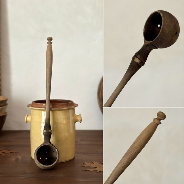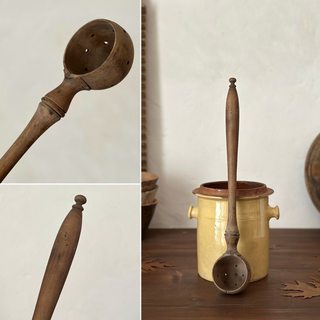 - la cuillère (1) : 39 cm, présente des petites traces d'usures dans le bois