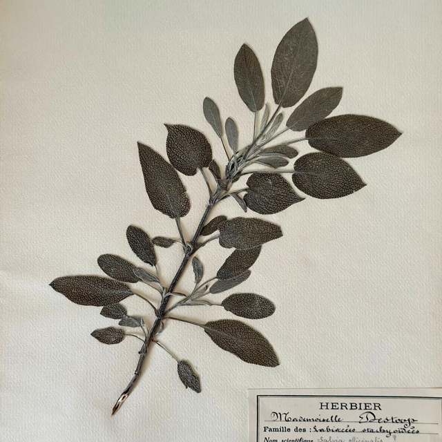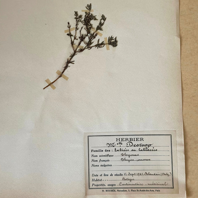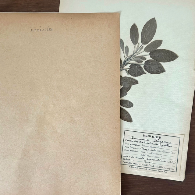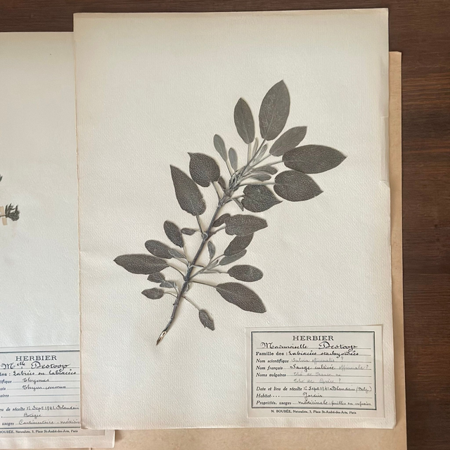 Belles planches d'herbier datant de 1941. Ensemble composé du feuillet qui protège les planches "Sauge" et "Thym".