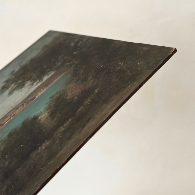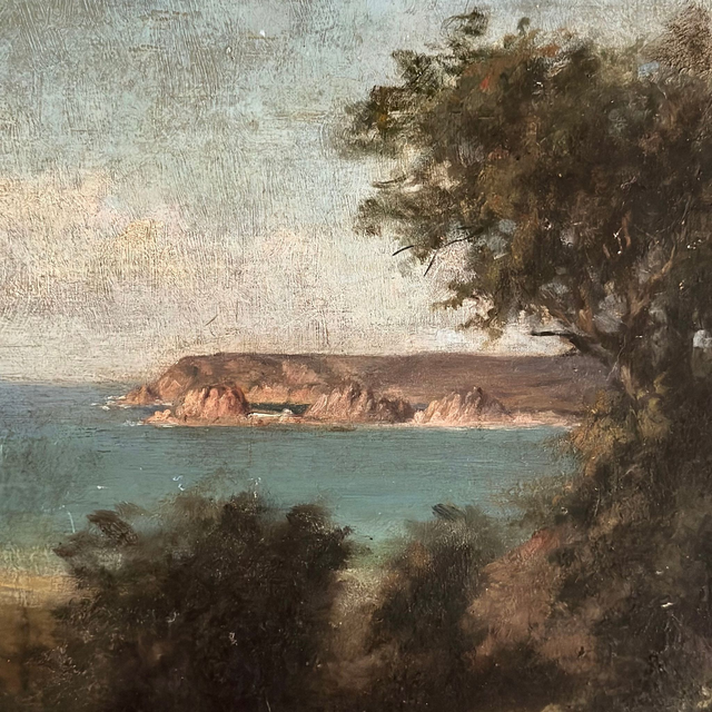 Coup de cœur pour ce superbe paysage de la côte bretonne. C'est une peinture sur plaque en bois des grands magasins du Louvre, non signée, non datée.