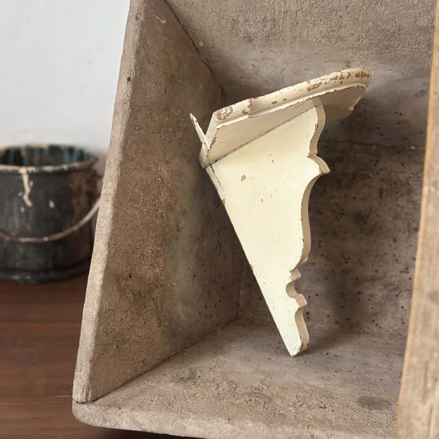 Mignonne petite sellette d'angle en bois blanc patiné.