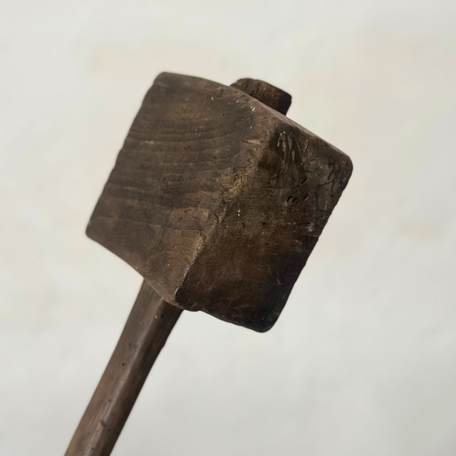 Beau maillet en bois foncé brut.